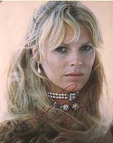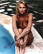 | #5212 Kim Basinger US $ 129.00 Terrific 8x10 color shot as Domino in NEVER SAY NEVER AGAIN. Awsome signed by her in-person for my french star-chaser. She is very tough to get in-person and trough the mail nearly impossible to get. Take the chance. A very nice example. |
