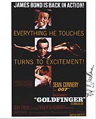| #2156 Honor Blackman US $ 69.00 8x10 color repro mini poster from the original year GB Goldfinger poster. Signed by Honor Blackman aka PUSSY GALORE in Goldfinger in the best area of the picture. VERY RARE shot from her. Obtained directly from her in GB Nov.1999. |
