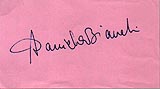 | #2052 Daniela Bianchi US $ 199.00 3x5 signed pink card. Daniela is one of the toughest Bond girls to get!!!! She was "Tania" in FROM RUSSIA WITH LOVE. One of the famoust Bond Girls ever. From my private Collection. |