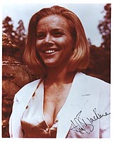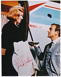| #2157 Honor Blackman US $ 69.00 8x10 color shot from Goldfinger. Signed by Honor Blackman aka PUSSY GALORE in Goldfinger in the best area of the picture. VERY RARE shot from her. Obtained directly from her in GB Nov.1999. |