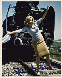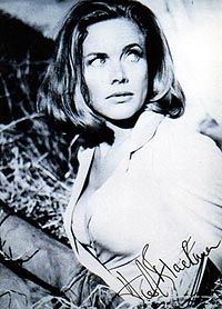 rare 007 shot- Awsome 8x10 bw shot as PUSSY GALORE IN GOLDFINGER. SHE ADDED ALSO HER CHARACTER NAME "PUSSY GALORE" TO HER SIGNATURE. VERY RARE MOTIVE!!! Obtained directly from her in London/GB May 2001. |
