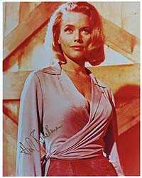 | #4537 Honor Blackman US $ 69.00 Awsome 8x10 color shot as PUSSY GALORE in Goldfinger. The famous haystack scene. Signed by her in gold. Very nice. She stopped signing recently!!! |
