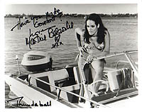 directly from her!---- WE NEVER SAW THIS SHOT BEFORE!!! Incredible nice 8x10 color shot from Mrs. Bianchi in the role of TANYA IN FROM RUSSIA WITH LOVE. Wonderfully signed by her at her private home for my dear friend Mike in 2002. DANIELA IS NEARLY IMPOSSIBLE TO GET AND ONE OF THE TOUGHEST AUTOGRAPHS FROM THE JAMES BOND WORLD!!!! NEARLY NOBODY HAS HER SECRET ADDRESS (Mike and me have it!!!) AND THERE EXIST ONLY A HANDFUL AUTOGRAPHS FROM HER WORLDWIDE. B'BC DID ONCE MORE THE RACE!!! |