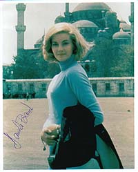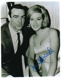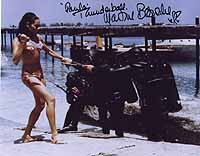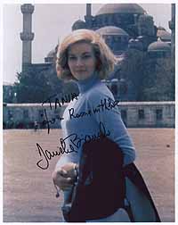 directly from her!---- Incredible nice 8x10 color shot from Mrs. Bianchi in the role of TANYA IN FROM RUSSIA WITH LOVE. Wonderfully signed by her at her private home for B'BC president Alexander Brauchle in December 2000. BIANCHI IS NEARLY IMPOSSIBLE TO GET AND ONE OF THE TOUGHEST AUTOGRAPHS FROM THE JAMES BOND WORLD!!!! NOBODY HAS HER ADDRESS AND THERE EXIST ONLY A HANDFUL AUTOGRAPHS FROM HER WORLDWIDE. B'BC DID ONCE MORE THE RACE!!! |