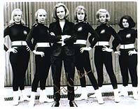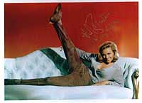 | #5414 Honor Blackman US $ 79.00 Extremely rare 8x10 color shot as PUSSY GALORE IN GOLDFINGER. One of the rarest shots of her from the film. Awsome signed by her and she added also the rare addition "Pussy" to her signature. Stopped signing totally trough the mail. Tough to find meanwhile, especially on such a rare shot. |