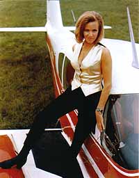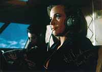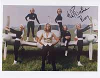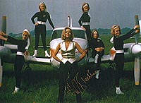 | #2003 Honor Blackman US $ 69.00 8x10 color shot as PUSSY GALORE IN GOLDFINGER. She is standing before her airplane from "Pussy Galore's Flying Circus". Very rare motive from her to get signed. Obtained from a top source in GB. |