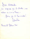 | #2315 Kim Basinger US $ 79.00 3x5 white index card, signed by "Domino" in NEVER SAY NEVER AGAIN aka Kim Basinger. She added her typical heart and "with love". Kim is meanwhile a nearly impossible to get signer!!! Super tough. Obtained from a private Collector in 1991 trough the mail. Meanwhile it would be impossble to get any signed piece trough the mail from her. Perfect for matting!!! |