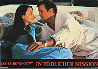 | #3962 Samantha Bond US $ 79.00 Fantastic 8x10 color shot as MS. MONEYPENNY IN THEWORLD IS NOT ENOUGH. Awsome shot with the cigare tube (we have also one of THESE PROD.USED cigar tubes in our prop section) and flirting with 007 himself. The most classic Moneypenny Pose! She is a very tough signer meanwhile!!! |