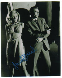 Extremely rare 8x10 bw shot as Pussy Galore in GOLDFINGER with 007. Wonderfully signed by her in gold and she added also Pussy Galore. She stopped signing meanwhile totally. RARE! |
