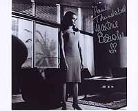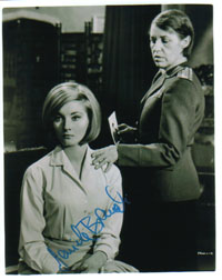 | #2842 Jill Bennet (dec.) US $ 179.00 4x6 bw shot as JACOBA BRINK, the ice queen trainer in FOR YOUR EYES ONLY. She is VERY VERY rare!!! Inscribed to "Malcolm". Tough! |