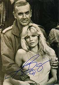 | #4526 Kim Basinger US $ 119.00 Awsome 8x10 bw photo as Domino with 007 himself in NEVER SAY NEVER AGAIN. Super signed by her. She is meanwhile a super tough signer and trough the mail nearly impossible as she sends out only preprints meanwhile.This one was obtained directly via a neighbour of her flat in New York City. TOUGH! |