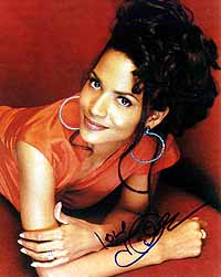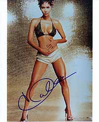 for the Oscar-Winning!- Superb 8x10 color photograph from Halle Berry, the brandnwe Bond girl in the Bond 20 adventure DIE ANOTHER DAY, which will be released in November 2002. She always was an incredible tough and bad signer (trough the mail she only sends preprints since the beginning of her carreer), and in-person also nearly impossible to get. She is in the same signer league as Sean Connery....But what will happen now???? Yesterday she won the Oscar!!! So it will be more and more impossible to get her AUTHENTIC autograph. Take this rare chance. My world's best star-chaser had the possibility to get her only ONE time in the past to sign 2 pieces which we could aquire from him now. he had them in his private collection till now. She signed in-person on March 1998 at Air France Airlines at Lax Airport in Los Angeles. Maybe your only chance to own an authentic signature from her. |