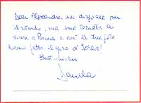 directly from her!---- Awsome nice 8x10 color shot from Mrs. Bianchi in the role of TANYA IN FROM RUSSIA WITH LOVE. Wonderfully signed by her at her private home for my dear friend Mike in 2002. DANIELA IS NEARLY IMPOSSIBLE TO GET AND ONE OF THE TOUGHEST AUTOGRAPHS FROM THE JAMES BOND WORLD!!!! NEARLY NOBODY HAS HER SECRET ADDRESS (Mike and me have it!!!) AND THERE EXIST ONLY A HANDFUL AUTOGRAPHS FROM HER WORLDWIDE. B'BC DID ONCE MORE THE RACE!!! |