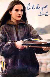 | #4523 Caroline Bliss US $ 79.00 8x10 color shot as MONEYPENNY in NEVER SAY NEVER AGAIN. She is hard to get on 007 shots, especially on a 8x10 one. Signed by her in black ballpoint pen. Obtained directly from her in GB. She is a really tough signer meanwhile. |