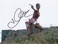| #5063 Halle Berry US $ 99.00 -DIE ANOTHER DAY AUTOGRAPH- Brandnew 8x10 color shot from Halle Berry as JINX in the brandnew 007 adventure DIE ANOTHER DAY. She is a very tough signer and very very hard to get. Signed in-person by her in London in December 2002. Buy with confidence! She does not answer trough the mail and when....secretarial! Beware! |