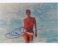 | #1414 Kim Basinger US $ 129.00 8x10 color shot as as Domino in "Never say never..... Pictured with 007 Sean Connery in the submarine. She is a VERY TOUGH signer and I did not see many signed photos from her from her BOND movie. |