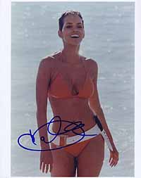 | #5429 Halle Berry US $ 99.00 Awsome 8x10 color shot as Jinx in DIE ANOTHER DAY. Wonderfully signed by her in-person in Los Angeles in 2003 and she added also a heart to her signature what is more than rare! Super tough signer meanwhile. |