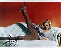 | #5368 Honor Blackman US $ 99.00 Extremely rare 8x10 color shot as Pussy Galore in Goldfinger. Awsome signed by Honor. Obtained from a very fine personal collection in GB. Honor meanwhile stopped signing totally! Rare shot! |