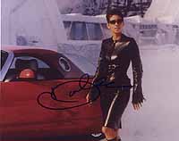 | #5378 Halle Berry US $ 129.00 Fantastic 8x10 color shot as JINX in DAY ANOTHER DAY. Rare shot with her Ford Thunderbird in front of GUSTAV GRAVES ICE PALACE. Signed in-person by her on 03/31/2003 at the Lakers Game, Staples Thtr., Los Angeles, Ca, USA. VERY TOUGH SIGNER! |