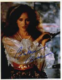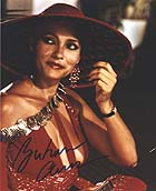 | #1562 Barbara Carrera US $ 79.00 8x10 color shot as "Fatima Blush" in NEVER SAY NEVER AGAIN. Great signature. Obtained from an very reputable auction house in the USA. |