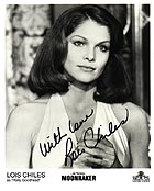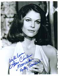 | #1812 Lois Chiles US $ 69.00 Unusual 8x10 bw shot from "HOLLY GOODHEAD" in MOONRAKER. Perfect signed by Lois Chiles in blue sharpie. She added "with love". |
