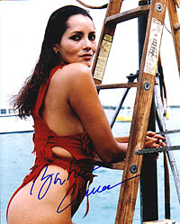 | #1805 Lois Chiles US $ 69.00 EXTREMELY RARE 8x10 color shot from her in MOONRAKER. This is a scene seen on the original lobby cards (in Brasilia). Sexy shot! Super signed in black marker. There are a lot of Lois Chiles autographs on the market but this one we never saw till now!!!! UNIQUE! |