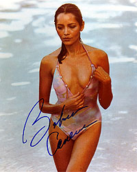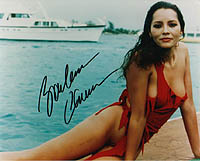 | #4550 Corinne Clery US $ 299.00 -one of the rarest Bond Girls- Fantastic 8x10 color shot as Corinne Dufour in MOONRAKER. I only saw one autograph from her before in my whole collectors life!!! Comes from a Swiss collector who has access to her. INCREDIBLE RARE! |