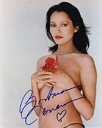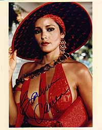 | #3241 Barbara Carrera US $ 79.00 VERY SEXY 8x10 color shot from her as FATIMA BLUSH in NEVER SAY NEVER AGAIN, awsome signature in the best area of the picture. From a very reliable source in GB. Signed in-person in London / GB SHE IS HARD TO GET IN ANY FORM MEANWHILE! |