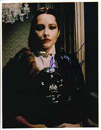 | #2609 Maria Gracia Cucinotta US $ 69.00 8x10 color shot as THE CIGAR GIRL in THE WORLD IS NOT ENOUGH. Wonderful shot from the movie in the baloon short before her death. She is shooting on Bond. Signed in person at the "THE BEACH" premiere in Los Angeles on Feb. 3 2000 at Mann's Chinese theater. She is a tough signer and hard to get!!!! |