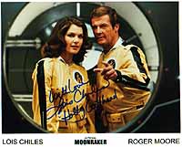 | #2549 Lois Chiles US $ 69.00 8x10 bw shot as HOLLY GOODHEAD IN MOONRAKER. Wonderful rare shot pictured with Roger Moore. SHE ALSO SIGNED WITH HER CHARACTER NAME WHAT IS VERY RARE!!! |