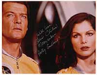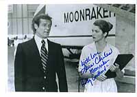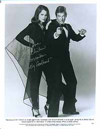 | #2521 Lois Chiles US $ 69.00 8x10 color shot as "HOLLY GOODHEAD" in MOONRAKER. Pictured with Moore. She ALSO SIGNED HOLLY GOODHEAD. This is extememly rare!!! 2 of this shot available! |