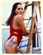| #1079 Barbara Carrera US $ 79.- 8x10 color shot from Barbara Carrera as "Fatima Blush" in Never Say Never Again. Pictured in red swim suit. Boldly signed. obtained from Top source for authentic stuff. |