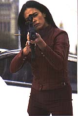 | #2532 Maria Gracia Cucinotta US $ 69.00 8x10 color full size shot as CIGAR GIRL with her machine gun at the London THEMSE boot chase scene. The nicest shot we got from her by far. Signed in-person on the premiere of "THE BEACH" at Man's Chinese Theater in Hollywood on February 3 2000. Wonderful autograph with transparent history. Get the real stuff!!! |