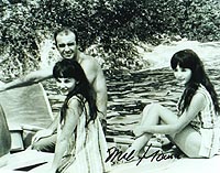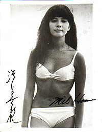 | #3030 Mie Hama --RAREST BOND GIRL-- US $ 379.00 8x6 black & white shot as "KISSY" in YOU ONLY LIVE TWICE. Wonderfully signed by her in black. Obtained from a long time collector in Thailand. She is one of the absolut toughest Bond Girls to come by. Take the chance!!! |