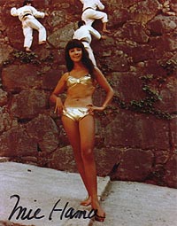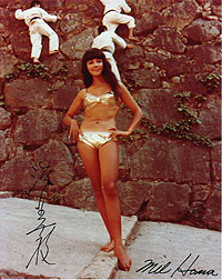 | #4436 Mie Hama US $ 399.00 Incredible nice 8x10 color shot as KISSY in YOU ONLY LIVE TWICE.We have gotten her today (December 28th, 2001)directly from her in Japan. Wonderfully signed in black ! She is one of the most sought after 007 signatures!!!! Super tough signer!!!! The best shot we ever had!!! |