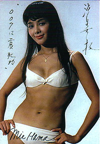 | #4309 Mie Hama US $ 399.00 The BEST Mie Hama we ever had!!! Terrific 8x10 color shot as KISSY with 007 himself in YOU ONLY LIVE TWICE. Extremely rare autograph from this japanese actress. Obtained directly from her in 2001 by a private collector from Switzerland. |