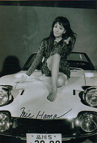 | #4438 Mie Hama US $ 399.00 ONE OF A KIND 8x10 bw BEHIND THE SCENES shot as KISSY in YOU ONLY LIVE TWICE. She is sitting on thé famous Toyota convertible driven by AKIKO WAKABAYASHI in the movie. We have gotten her today (December 28th, 2001)directly from her in Japan. Wonderfully signed in black! She is one of the most sought after 007 signatures!!!! Super tough signer!!!! This shot we have never seen before!!! |