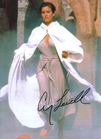 | #4006 Valerie Leon US $ 79.00 One of a kind 8x10 color shot from THE SPY WHO LOVED ME where she also appeared in. She is a very tough signer and stopped signing trough the mail completely!!! Obtained in-person at the Autografica Show in May 2001, where she attended as a star-guest. Signed directly from her for a B'BC representative. Buy with confidence from B'BC! She added "Sardinia" to her signature. |