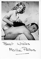 | #4612 Mollie Peters US $ 119.00 - A scorcher- Superb 8x10 bw shot as PATRICIA FEARING IN THUNDERBALL. Incredible nice signed by her "with warmest regards, Mollie Peters" and "Patricia Fearing-Therapist Thunderball". She stopped signed totally about 2 years ago. This one is one of the best we ever had and was released now from my private collection. |