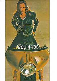 | #3964 Luciana Paluzzi US $ 129.00 Incredible nice and RARE 8x10 bw shot as FIONA VOLPE in THUNDERBALL. She is sitting on her motorbycycle after killing Count Lippe. Wonderfully signed by her in the best location of the photo.Obtained from a collector in Italy. VERY RARE!!! |