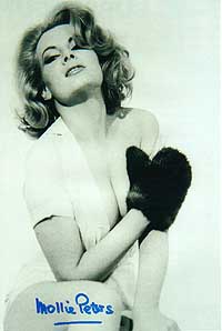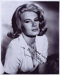 | #2067 Molly Peters US $ 119.00 4x6 bw shot from THUNDERBALL. Signed by MOLLY PETERS, the famous bond girl with the fur glove!!!! Signed items by her are EXTREMELY RARE to find. Take the chance!!! |