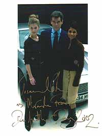 | #4958 Rosamund Pike US $ 99.00 -DIE ANOTHER DAY- EXTREMELY RARE 8x10 color shot from DIE ANOTHER DAY. Original Keith Hampshire photograph. Signed brandnew last week by Rosamund Pike who plays the role of MIRANDA FROST. She signed wonderfully with a fine gold pen. EXTREMELY RARE AS IT IS A PROTOTYPE SHOT FOR THE POSTER WHICH WAS NOT PRODUCED IN THE END!!! |