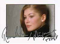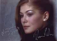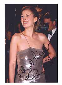 | #5265 Rosamund Pike US $ 129.00 The nicest shot we had so far in stock! Awsome 8x10 color shot as Miranda Froost in DIE ANOTHER DAY. Wonderfully signed in-person in London/GB for my star-chaser. Awsome signature and she added Best Wishes to her signature. Tough signer meanwhile!!! She only signs with inscription when met in-person but the inscription was taken off professionally. |