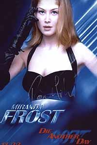 | #5003 Rosamund Pike US $ 99.00 -DIE ANOTHER DAY- Incredible nice 8x10 color shot from DIE ANOTHER DAY. Signed brandnew by Rosamund Pike who plays the role of MIRANDA FROST. She signed wonderfully: Rosamund Pike Miranda Frost. |