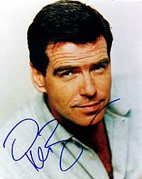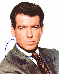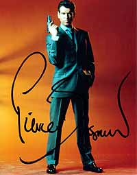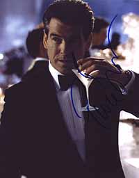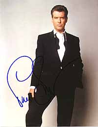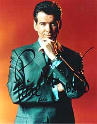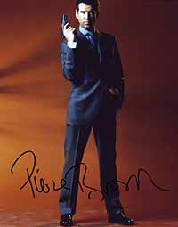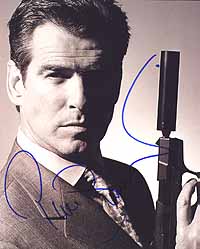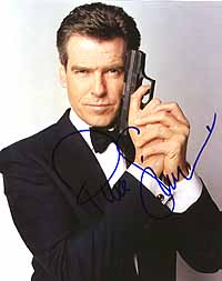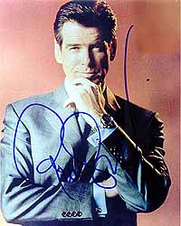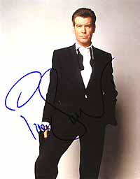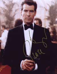 | #5129 Pierce Brosnan US $ 149.00 Our world's star chaser #1 did int once more. He got for us extremely nice Pierce Brosnans with interesting history! 8x10 bw classic pose as 007 James Bond, signed by Pierce Brosnan in-person on February 6, 2003 as he was leaving the Staples Center in Los Angeles, CA, USA, after a Rolling Stones Concert! Market is flooded with Brosnan fakes. Beware and get the real deal from THE 007 experts at b'bc. |