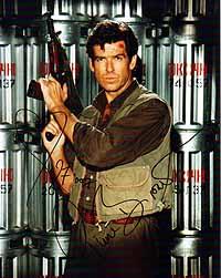 | #5494 Pierce Brosnan US $ 129.00 Fantastic and very very rare 8x10 color shot as 007 James Bond in the end action sequence of GOLDENEYE. Signed in-person by Pierce Brosnan at Laxx Airport, Los Angeles. |