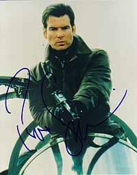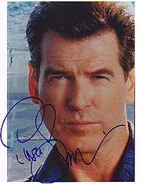 | #4653 Pierce Brosnan US $ 119.00 Very nice action 8x10 color shot from our actual 007 JAMES BOND Pierce Brosnan. Super signed by him in-person on 03/19/02 at the JFK airport in New York. Signed brandnew!!! Awsome shot and signature. |