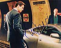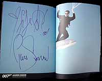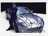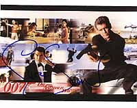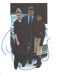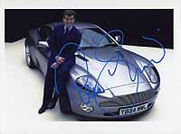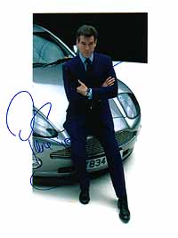 -DIE ANOTHER DAY AUTOGRAPH- BRANDNEW- 8x10 color shot from DIE ANOTHER DAY with the Aston Martin and Q. Wonderfully signed by Pierce Brosnan in-person for us on 11/04/2002 at the Omega 007 watch party, Times Sq., New York City. Very tough to get this meanwhile tough signer on material fromthe brandnew released Bond adventure. |
