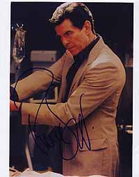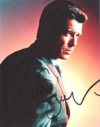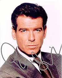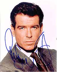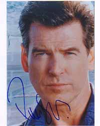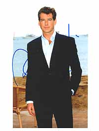 | #4654 Pierce Brosnan US $ 119.00 Very classic and handsome 8x10 color shot from our actual 007 JAMES BOND Pierce Brosnan. Super signed by him in-person on 03/19/02 at the JFK airport in New York. Signed brandnew!!! He signed wonderfully in gold so the contrast of the photo and the signature is perfect. A rare display piece!!! |