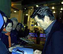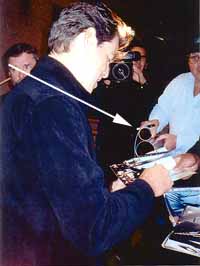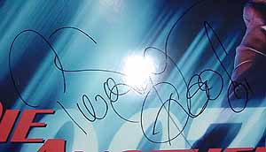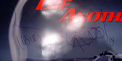 | #5074 Pierce Brosnan US $ 129.00 Superb 8x10 color shot from DIE ANOTHER DAY, signed by Pierce Brosnan in-person on 12/08/2002 at the L'ermitage hotel in Beverly Hills, Ca, USA. Awsome signature. Sorry for the bad scan. He is tough on DAD material!!! |